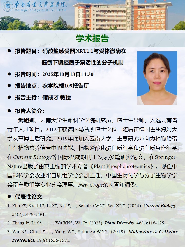 学术报告--硝酸盐感受器NRT1.1与受体激酶在低氮下调控质子泵活性的分子机制
