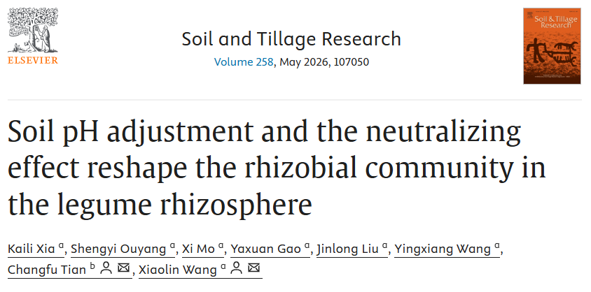 1月6日,华南农业大学农学院王孝林教授团队与中国农业大学田长富教授团队在国际权威期刊Soil & Tillage Research发表题为“Soil pH adjustment and the neutralizing effect reshape the rhizobial community in the legume rhizosphere”的研究论文,首次系统揭示了土壤pH调控通过“中和效应”重塑豆科植物根际根瘤菌群落的机制。该研究为通过精准土壤管理提高豆科作物固氮效率提供了理论依据。
