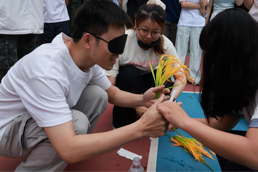 活动在热烈昂扬的氛围中拉开帷幕。拔河项目比拼激烈,参赛队员齐心协力、奋力拼搏,呐喊助威声回荡全场。“根系缠绕同心走”考验团队默契,队员们步调一致、携手共进;“搭桥运粮”兼顾速度与平衡,参赛同学各展所长,现场欢声笑语不断;“虫口夺粮・贴贴大逃亡”攻防交替、妙趣横生;“嫁接・新枝成活” 依托信任与配合,同学们在互动中增进默契、加深情谊。