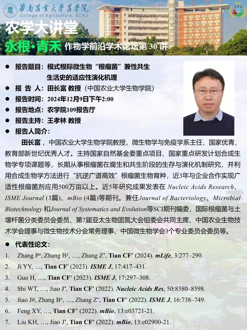 115周年校庆“学术华农”系列活动之农学大讲堂--“永根•青禾”作物学前沿学术论坛第30讲