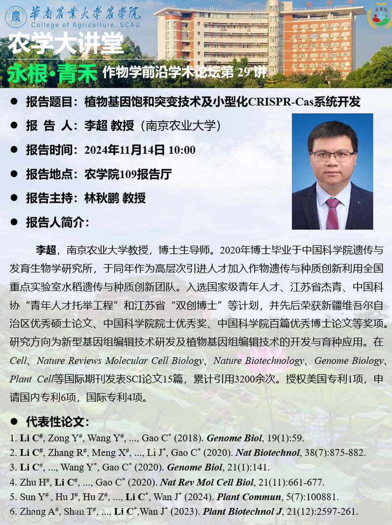 115周年校庆“学术华农”系列活动之0421农学大讲堂--“永根•青禾”作物学前沿学术论坛第29讲