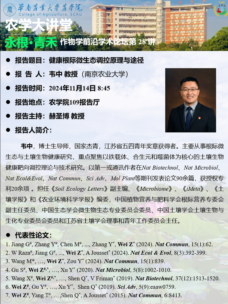 115周年校庆“学术华农”系列活动之0422农学大讲堂--“永根•青禾”作物学前沿学术论坛第28讲