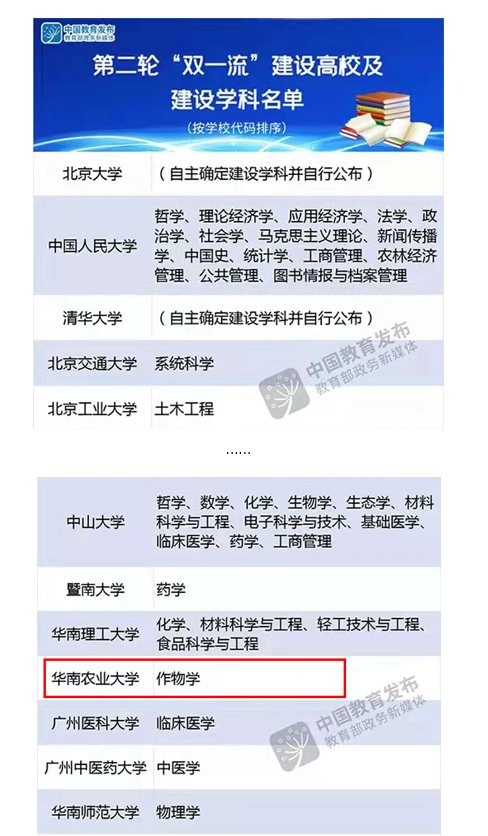 South China Agricultural University became a Double-First Class University of China, according to the list of universities and disciplines included in the double world-class project released by the Ministry of Education, the Ministry of Finance and the National Development and Reform Commission.