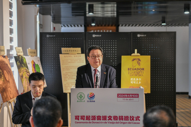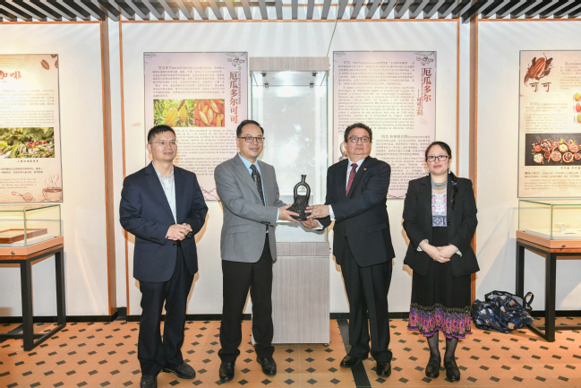 This donation ceremony is not only an enrichment of SCAU's collection but also an important manifestation of cultural exchange and cooperation between China and Ecuador. On behalf of the university, Qiu Rongliang accepted this valuable cultural artifact donation and presented a donation certificate to Consul General Edwin Martinez. In conjunction with this donation ceremony, the South China Agricultural Museum held a one-month exhibition on tea, cocoa, and coffee, known as the three major beverages of the world. This not only enriched the content of the cultural exchange activities but also has significant importance for the public to understand, learn, protect, and preserve the common cultural heritage of humanity.