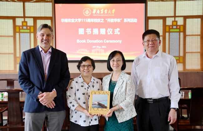 Before the meeting, the delegation attended the book donation ceremony of the 115th anniversary celebration series. Professor Clovia Holdsworth, Dean of the Faculty of Environmental and Life Sciences at The University of Newcastle, donated the Ocean Pools photo album to Guangdong SCAU Assets Management Co., Ltd.